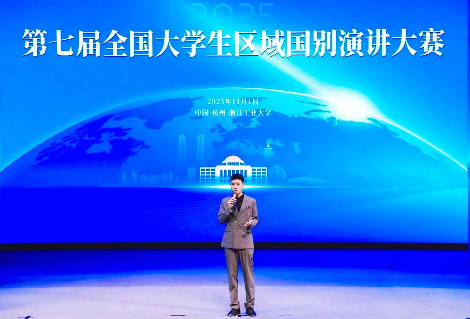 11月2日,由教育部国别和区域研究工作秘书处、高校区域国别学人才培养与学科建设联盟(高盟)等单位联合主办的“第七届全国大学生区域国别演讲大赛”(复赛、决赛)在浙江工业大学成功举办。我校国际关系学院2024级学生弯靖骅在决赛中发挥出色,获得三等奖。这也是我校首次获得该赛事奖项,实现了我校区域国别人才培养的又一突破。