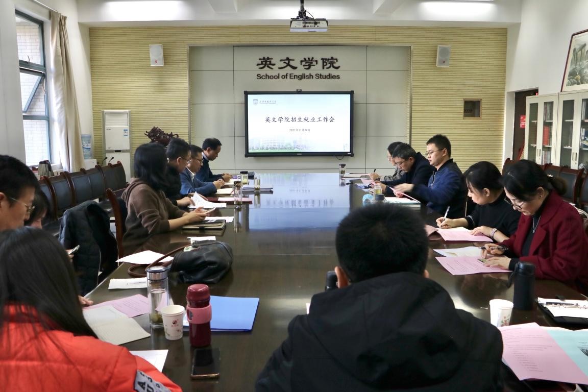 11月24日下午,英文学院在JG209会议室召开招生就业工作专题会。全体院领导、党委委员、科级干部、系主任及教研室主任、教师代表、全体辅导员和学生代表参加会议。会议由学院党委书记单升军主持。