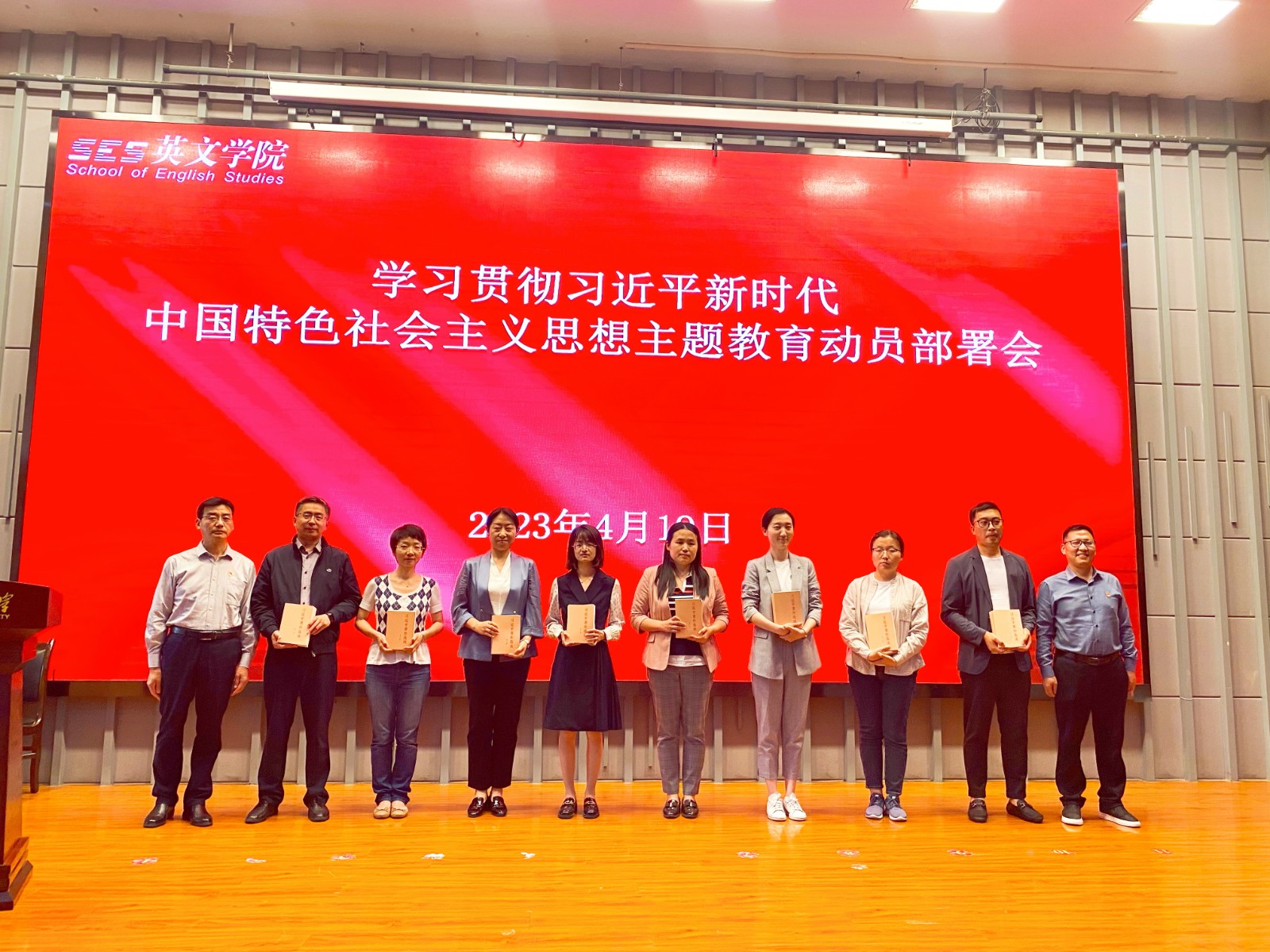 4月19日下午,英文学院在教学楼A区111报告厅组织召开学习贯彻习近平新时代中国特色社会主义思想主题教育动员部署会。学校第二巡回指导组组长、校党委委员、统战部部长郑锐华,联络员刘鹏涛到会指导,学院党委理论学习中心组成员、学院全体教职工、师生支部书记、学生代表参加会议。会议由英文学院党委副书记马文静主持。