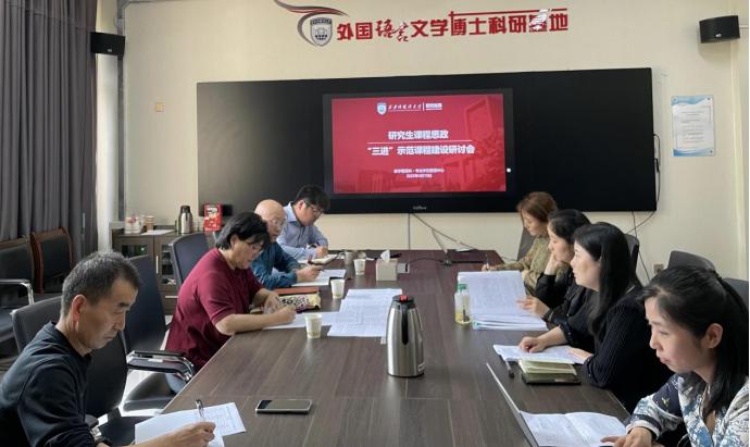 4月19日下午,研究生课程思政“三进”示范课程建设研讨会在教学楼E区214举行,研究生院院长汪顺玉、马克思主义学院院长张亲霞、“理解当代中国”多语种系列教材参编人员、欧洲学院教师杨文革以及研究生课程思政“三进”示范课程专项负责人参加了研讨会。会议由研究生院副院长王仁锋主持。