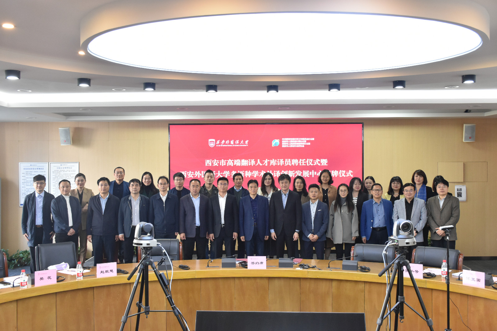 10月20日,西安市高端翻译人才库译员聘任仪式暨西安外国语大学多语种学术外译创新发展中心揭牌仪式在长安校区举行。中共西安市委外事工作委员会办公室副主任杨桢、外事翻译中心负责人曹辉、干部随飞,北京慧澜国际文化传播有限公司总裁潘志、总经理陈旭,我校副校长党争胜,党委宣传部、英文学院、日本文化经济学院、欧洲学院、亚非学院、俄语学院、汉学院、高级翻译学院等单位负责人及教师代表参加活动。仪式由高级翻译学院党委书记樊花主持。