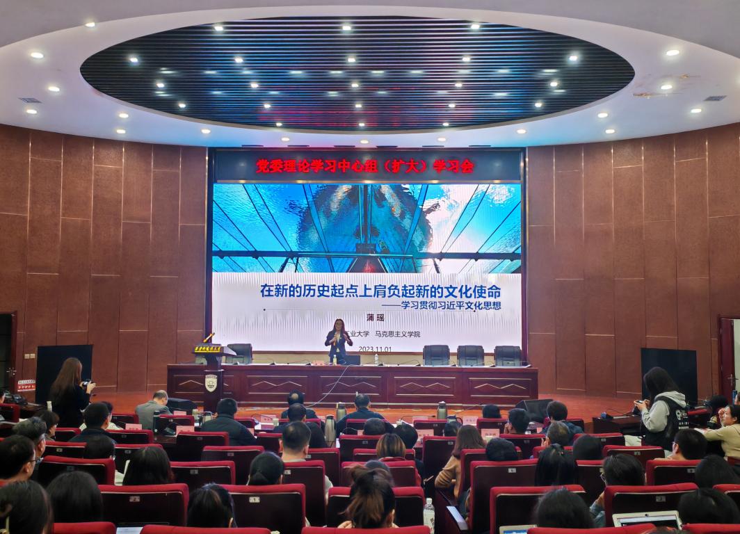 为深入学习贯彻习近平文化思想和关于宣传思想文化工作重要指示精神。11月1日下午,陕西省首届思政教学名师,西北工业大学马克思主义学院蒲瑶教授受邀为我校校领导、党委理论中心组成员、师生代表作“习近平文化思想”专题辅导报告。