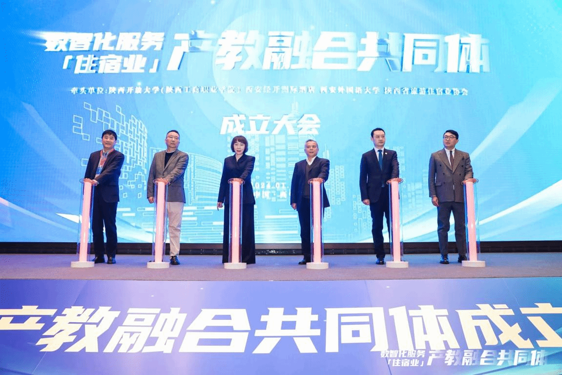 数智化(住宿业)产教融合共同体由西安经开洲际酒店、西安外国语大学、陕西工商职业学院、陕西省旅游住宿业协会牵头成立,旨在推动陕西省相关专业人才培养供给侧与数智化服务需求的紧密对接,发挥龙头企业、高水平高等学校、职业学校和协会的牵引作用,以推动陕西省住宿行业发展为宗旨,增强产教融合共同体服务企业、服务市场、服务社会的能力,打造高素质住宿业人才培养和住宿业服务高地,构建陕西住宿业产教融合新生态。