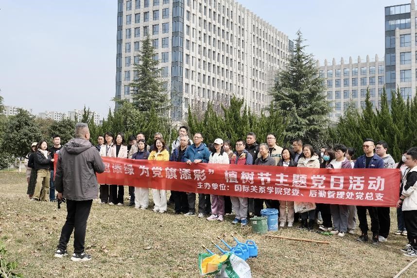 2024年3月12日是我国第46个植树节,为深入学习贯彻党的二十大精神,深刻领会促进人与自然和谐共生对中国式现代化的重大意义,国际关系学院党委与后勤管理处党总支共同开展了“为校园添绿 为党旗添彩”主题党日活动。国际关系学院与后勤管理处领导班子成员及师生党员代表参加了本次活动。