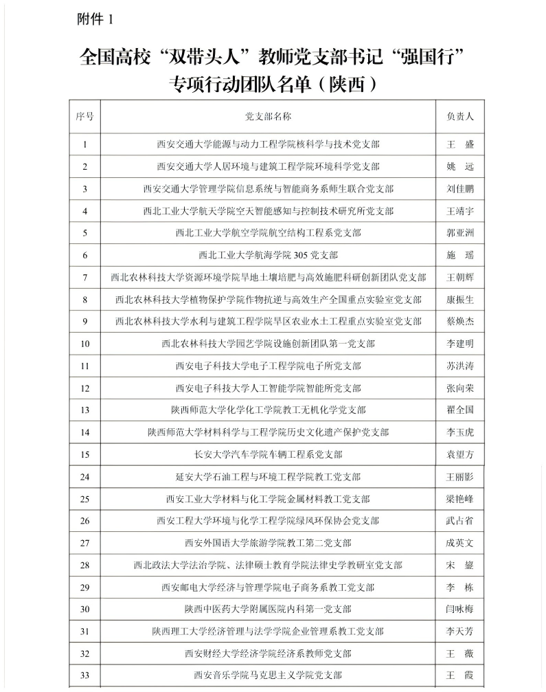 全国高校“双带头人”教师党支部书记“强国行”专项行动是教育部党组为深入推动教育、科技、人才“三位一体”协同融合发展,全面增强高校教师党支部的政治功能和组织功能,充分发挥基层党组织战斗堡垒作用和党员先锋模范作用,不断强化高校“双带头人”队伍建设和作用发挥的重要举措。专项行动为期三年,入选的支部要在开展党建联建、提供教育服务、推动科技赋能、深化实践育人四个方面进行专项行动并落实新举措。