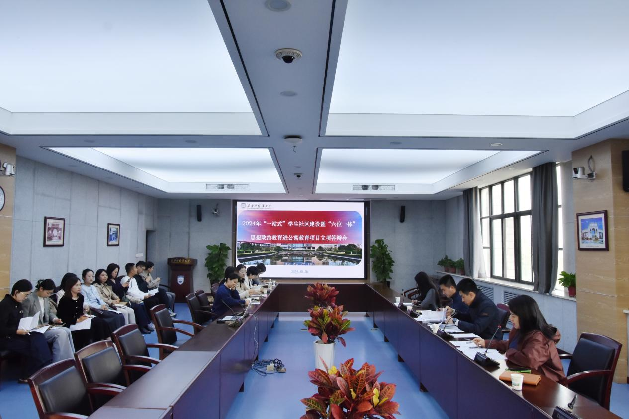 为深入学习贯彻习近平新时代中国特色社会主义思想,落实立德树人根本任务,根据《关于申报2024年“一站式”学生社区建设暨“六位一体”思想政治教育进公寓教育项目的通知》安排,10月25日下午学校组织开展2024年“一站式”学生社区建设暨“六位一体”思想政治教育进公寓教育项目立项答辩会。