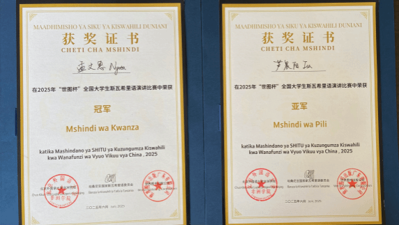 西外斯语专业师生高度重视此次大赛。赛前,多次组织线上、线下改稿;围绕大赛主题,精准选题;学习观摩优秀案例,提高演讲技巧;组织集体研讨、提升演讲水平。经过激烈角逐,我校选手围绕斯瓦希里语与中非关系娓娓道来,台风稳健、应答自如,在高年级组中脱颖而出,两名学生分别获得冠军、亚军。
